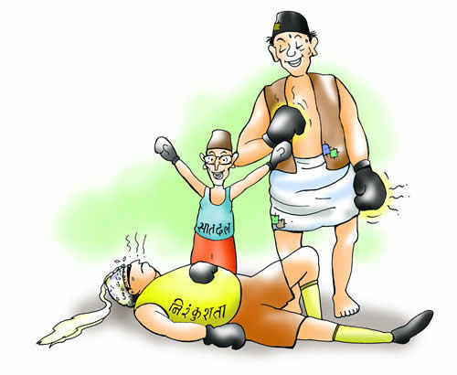 I'm for the punishment of all these culprits. All the committees are made n' nth but the drama. Their recommendations were never implemented either be Rhitik roshan case, Nepalese massacre in Iraq, Mallik Ayog, Nagarkot Massacre. This time, they should get punished. It's not the question of taking the revenge. I'm against physically or verbally abusing the Royalists and those elected in local elections. Royalists are free to have their own party and they're not culrprits. Culrpits are only those who tried to kill innocent people by firing tear gar, bullets at their head; baton-charging; indiscriminate firing at kalanki, gongabu. These are very serious human rights abuse. And if this time, nothing is done, it will happen again n' again. Obviously, people who came in the streets were not either in the favor or party or maoists; following cartoon depicts that.