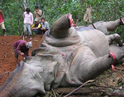 TEARS ROLLED DOWN MY EYES WHEN i SAW THE RHINOS FEET CUT AND IS FULL OF BLOOD.. THE BASTARD WHO DID THIS WILL NEVER GET PEACE IN HIS LIFE..... HE IS A mFU(KER... HE IS THE PERSON WHO SHOULD KISS THE ASS OF A PIG..... LOVER OF NATURE