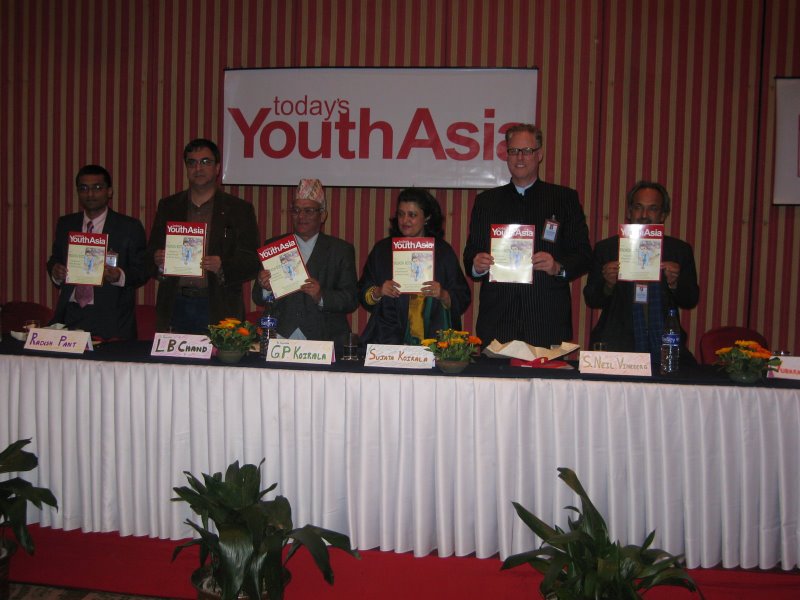 hehe, another year, another group of innocent youngsters falls victim to the "fame games" at today's youth conducted by master shah. i don't know how long this episode is going to last, but i wish them all the best. hopefully, they will be able to see stuff earlier than the others have. i also like the fact that munna is smack in the middle of the photo, inbetween lokendra bdr chand and sujata koirala, essentially. just goes to show how much exposure he wants the youth to have.