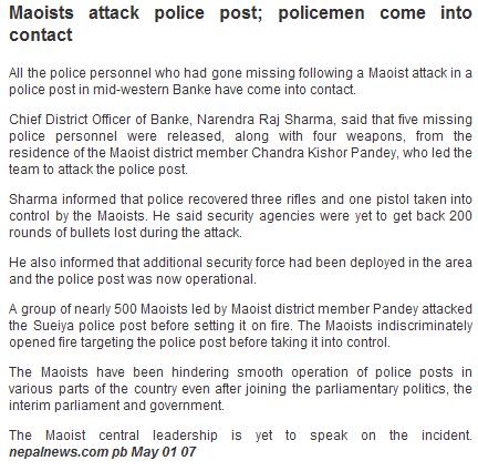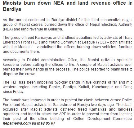 Hey guys I agree with you and ultimetly all Neplease will agree, Maoest are the cruel demon. I had seen what they had done in the remote village of Karnali while I was working there as a development worker, was much worser then what might did the muslim terroist. I will share events if someone is intrested. I am planning to writte book about thier terrorising activities in the village, villager reaction to them, how they spent the time, how they collect the money and where they put the money.