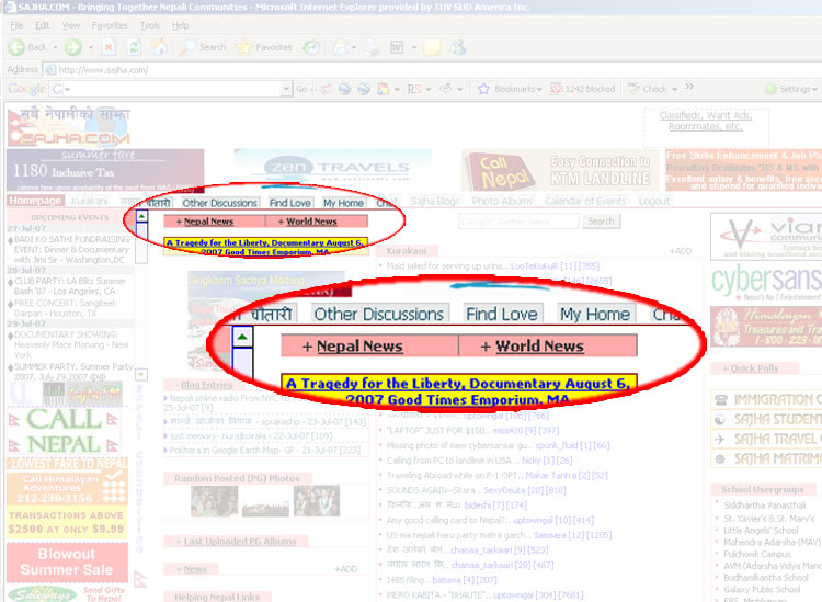 Captain, the scrolling stops after one run on IE but keeps on scrolling in Firefox. In any case I have removed the scrolling now. Need to start working on personalizing sajha through links like 'my home' in which you have done an amazing job i.e. Captain'sHome . I'll be working of letting members customize their home page better. Connecting all their blogs and postings under one page and giving an 'ownership'. Now that the site has more or less stabilized at around ten thousand visitors a day, I think it's time to focus more on the members themselves. Please feel free to give any suggestions on blogs and/or other issues. Thanks!
