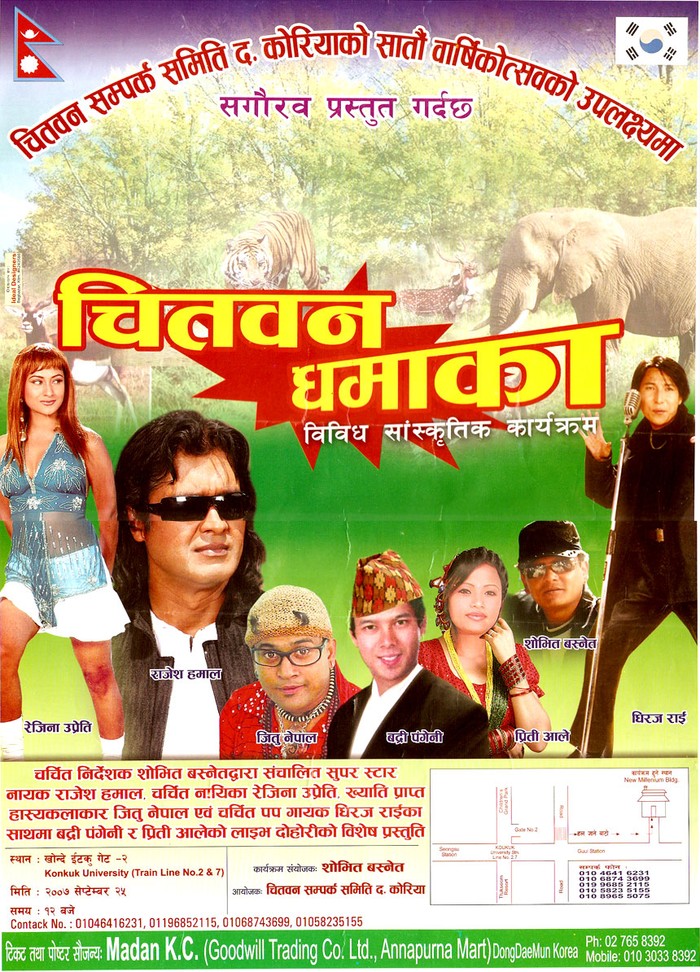 Korea ma Nepali haru ko kasto compition cha jasto cha. 3 different programe haru laskerai rakera.. ki tesko satoo jointley 3 wota programe lai milayer 1 dinma parera JOIN-MEGA programe gareko vaye. Programe herna auni manchey haru lai same place ma 3 patak aunu partena, ani programe pani super success huney ra nepal ka kalakar lai pani bore nahuney. Malai ta ali kasto kasto lagyoo.Kasko programe ma jani kasko ma najani jasto lagyoo... Nepali haru sabai p 3 wota programe haru herna vayawochan hola ta..? Any way good luck , Nepali daju Vai -DD Bahini ra Sathi haru ma. Enjoy the all programe.