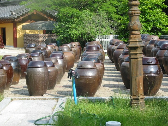 Soybean fomentation, fomented soybean is integral part of Korean food. fomented soybean banauney thau bit smelly huncha tara it gives very good and taste flavor to the food. In these vats below soybean are being formented.