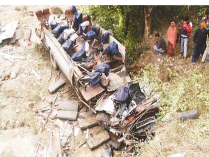 | विद्यार्थी सवार बस दुर्घटना, १९ को मृत्यु |