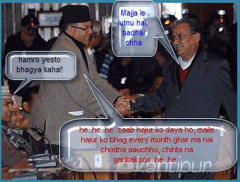 NOTE: The opinions here represent the opinions of the individual posters, and not of Sajha.com. It is not possible for sajha.com to monitor all the postings, since sajha.com merely seeks to provide a cyber location for discussing ideas and concerns related to Nepal and the Nepalis. Please send an email to admin@sajha.com using a valid email address if you want any posting to be considered for deletion. Your request will be handled on a one to one basis. Sajha.com is a service please don't abuse it. - Thanks.