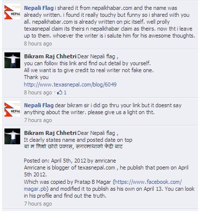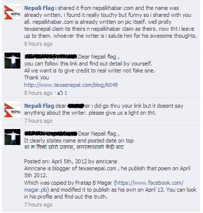 In the same token, it would be ideal for the other facebook group नेपाल खबर डट कम to remove the questionably credited poem, but I see the following statement issued by them